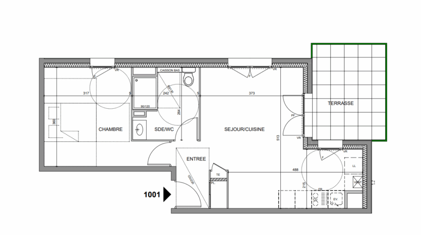 Des prestations soignées : carrelage 45×45, volets roulants électriques, chauffage individuel gaz