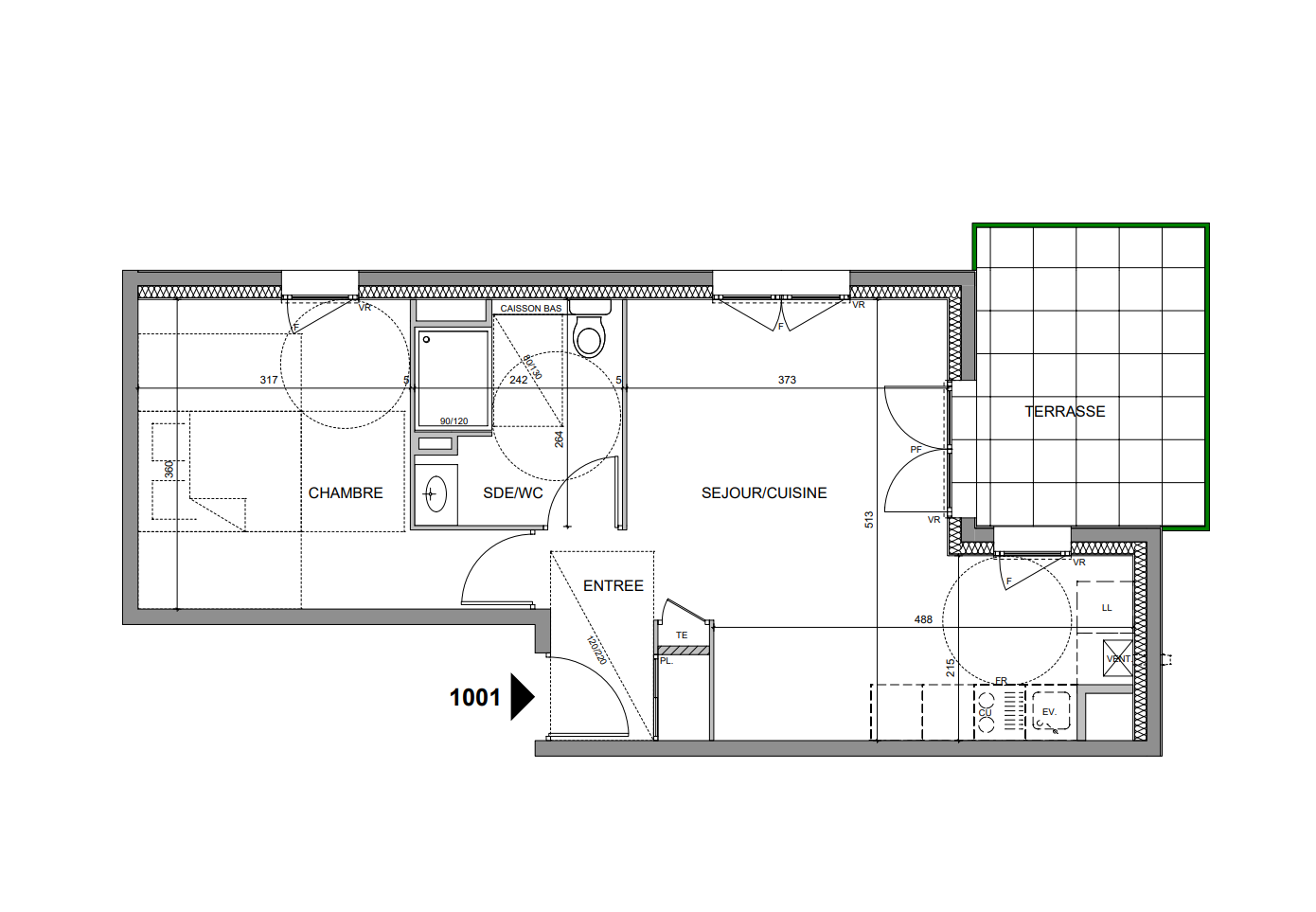 Il s’agit d’un appartement 2 pièces situé au RDC comprenant :