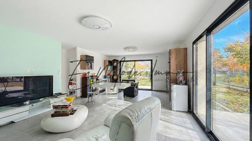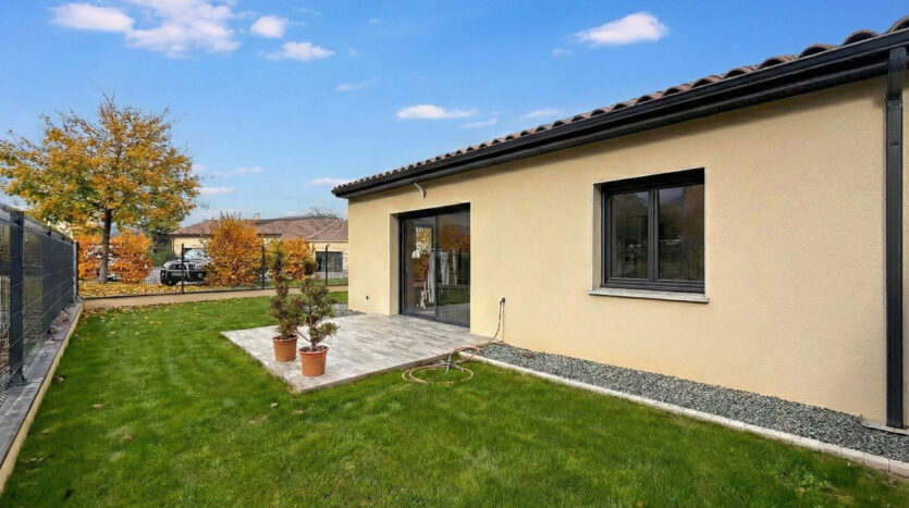o Garage carrelé et isolé de 20,18 m2, idéal pour stationner ou créer un espace de stockage supplémentaire. o Séjour lumineux de 39 m2, sublimé par deux grandes baies vitrées offrant un accès direct à la terrasse et au jardin. o Cuisine équipée contemporaine, esthétique et fonctionnelle, dotée d’une fenêtre. o Deux chambres confortables. o Salle de bains moderne avec douche à l’italienne et velux motorisé, véritable puits de lumière apportant confort et clarté naturelle. o Carrelage élégant dans toute la maison, garantissant modernité et facilité d’entretien.