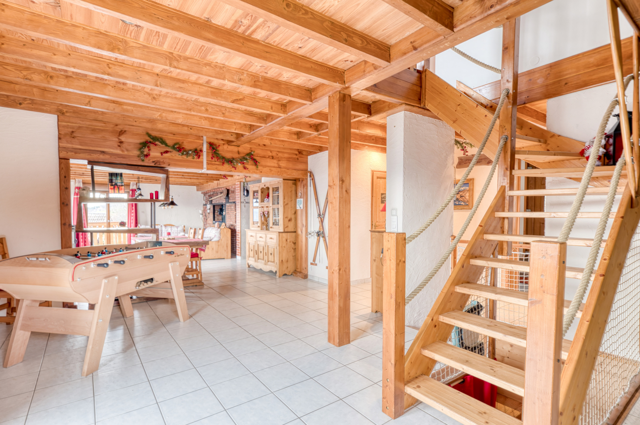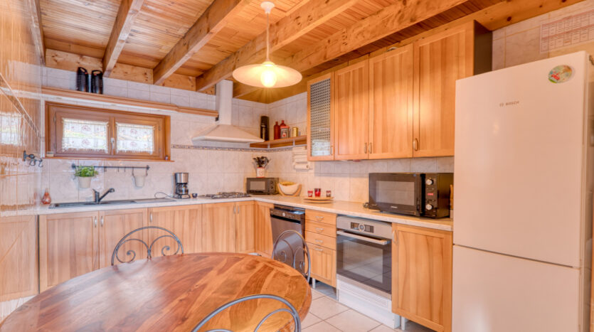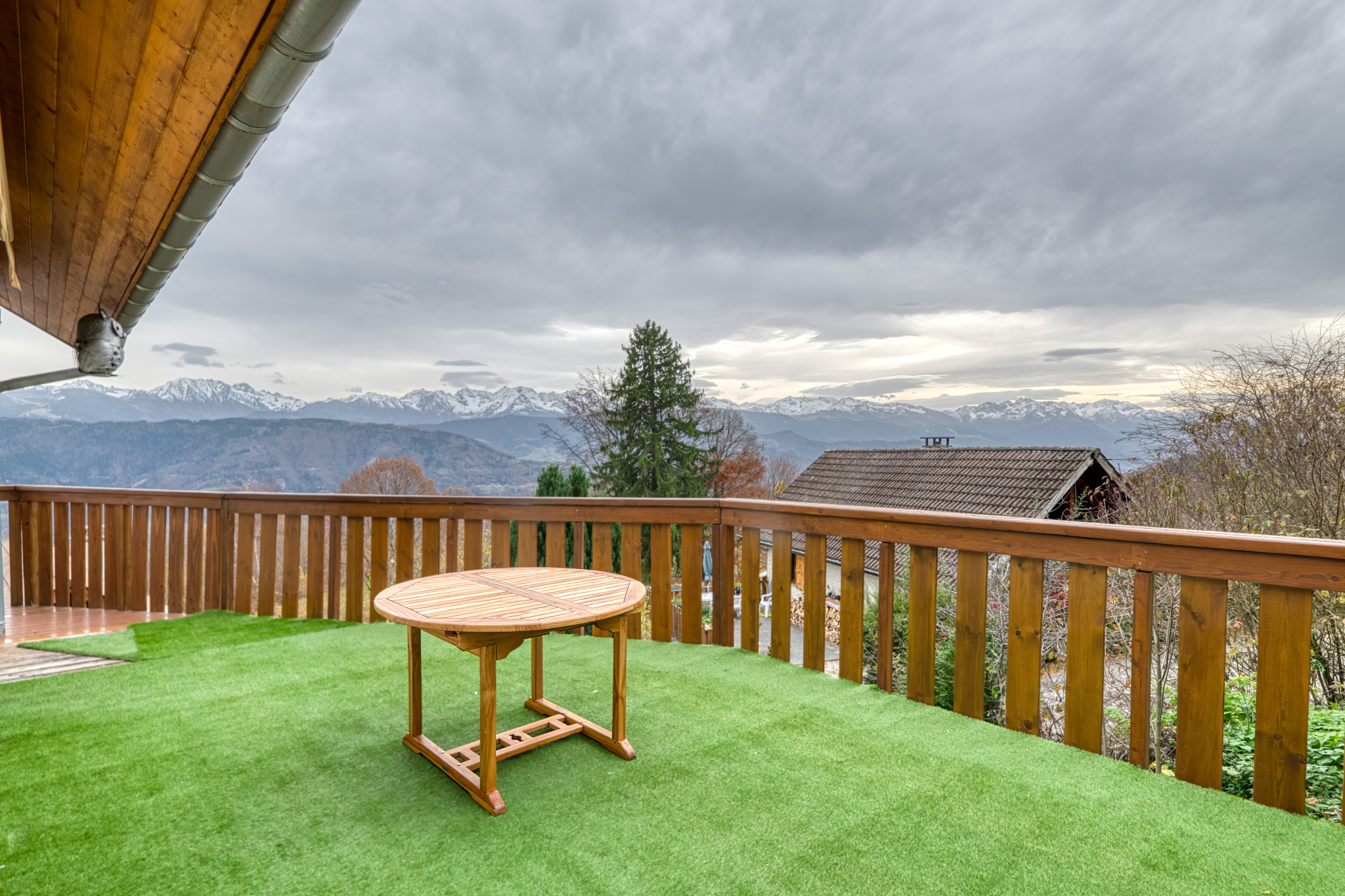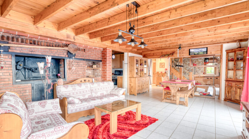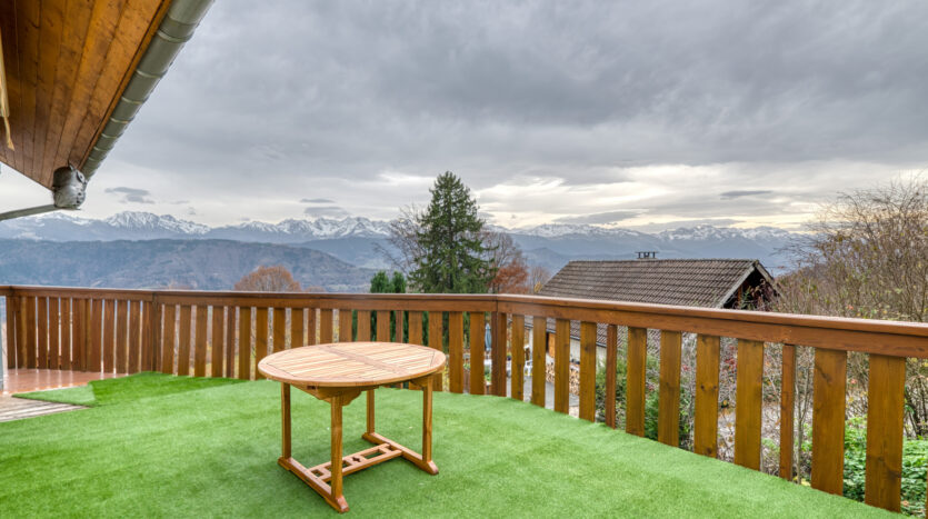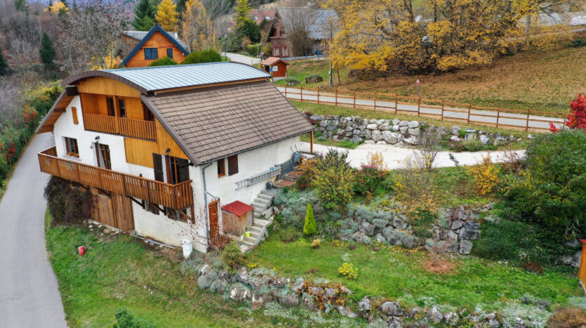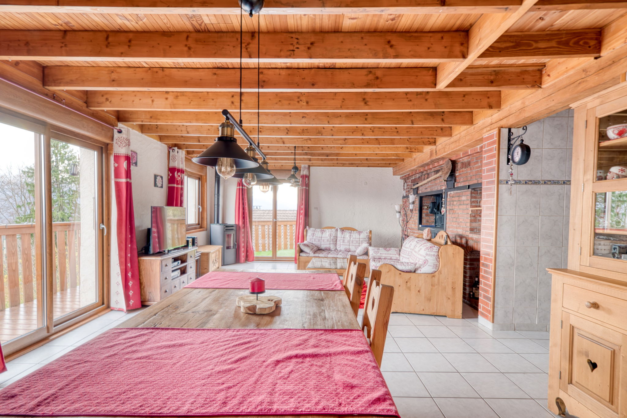 Sa toiture courbe entièrement rénovée en zinc joint debout lui apporte une allure de chalet contemporain, parfaitement intégrée dans le paysage alpin. Orientée pour capter la lumière, elle profite d’une vue dégagée et panoramique sur les massifs.